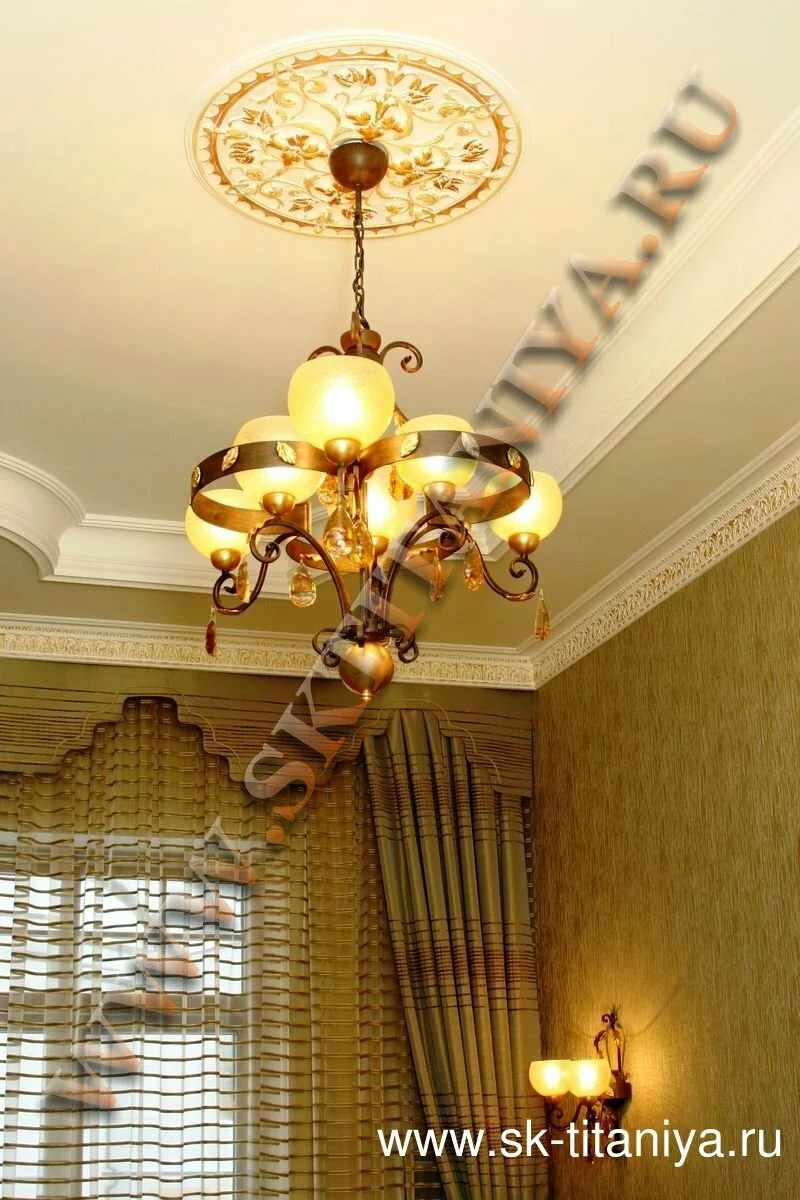Лепные украшения на потолке придают комнате более завершенный вид. Но